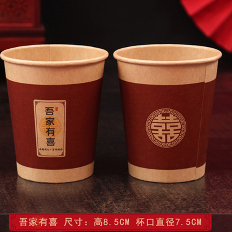 Wedding disposable paper cup red bowl wedding wedding supplies collection festive thickened cup tea cup happy word water cup