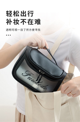 Large Capacity Famous Person Makeup Bag Hand-held Transparent Toothbrush Bag Waterproof Travel Portable Skincare Storage Bag with Logo Print