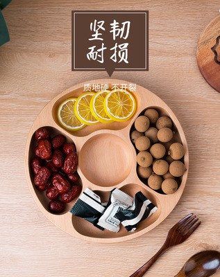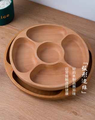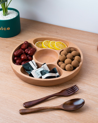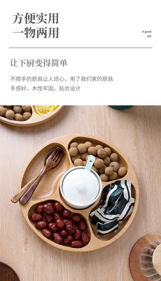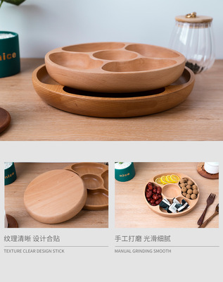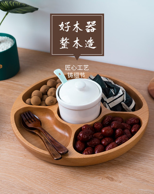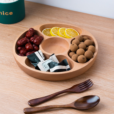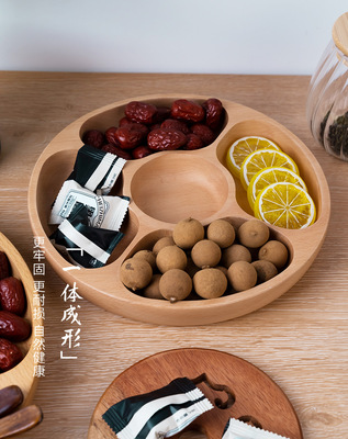 創意圓形木製茶盤櫸木五格盤家用酒店會所點心果盤實木零食收納盤