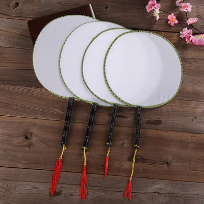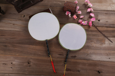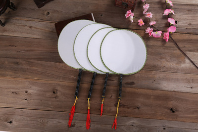 21CM White Palace Fan Creative Painting Court Fan Silk Fan Round Fan Blank DIY Fan for Kindergarten and Foreign Trade