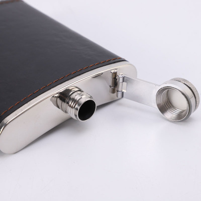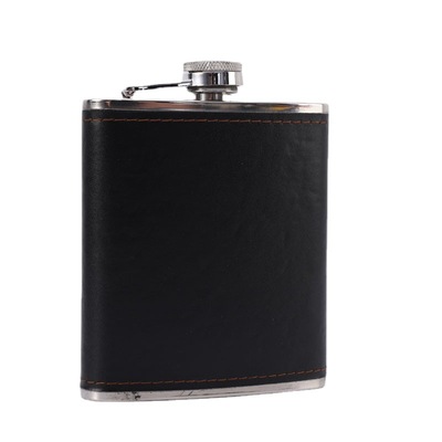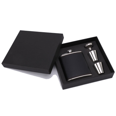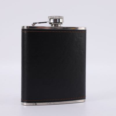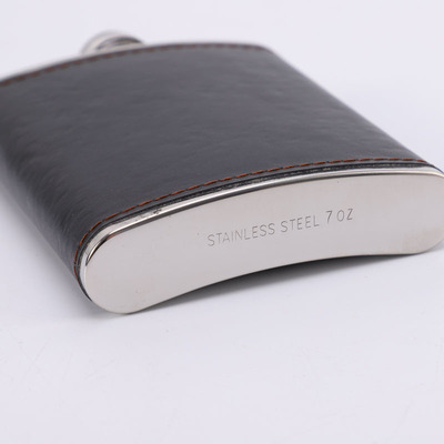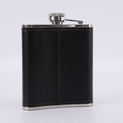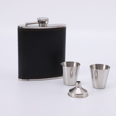 Supply Leather Wrap 7 oz Cross-border Gift Portable Outdoor Camping Stainless Steel Flat Flask Cup Set