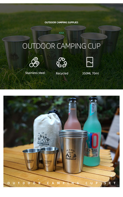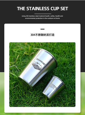 戶外304不鏽鋼8件套杯大號露營野餐便攜啤酒杯套裝野營杯家用杯子