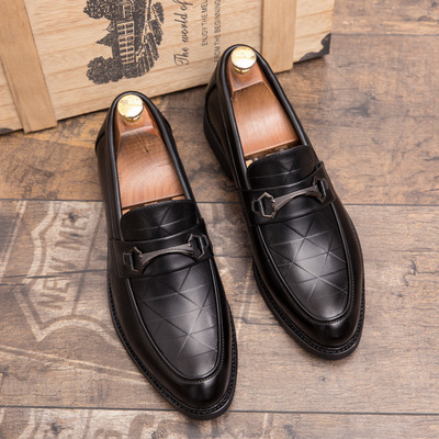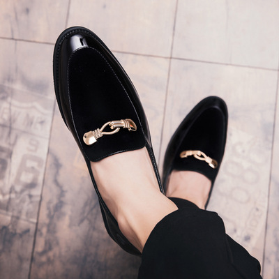 跨境新款韓版一腳蹬皮鞋男士時尚潮流休閒鞋男黑色套腳英倫皮鞋子