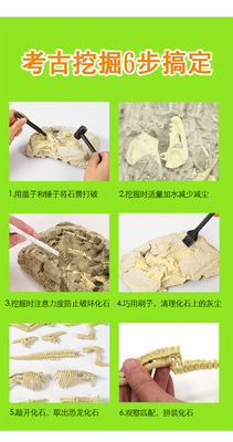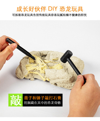 恐龍考古批發玩具兒童手工DIY挖掘寶石尋寶仿真考古化石拼裝恐龍