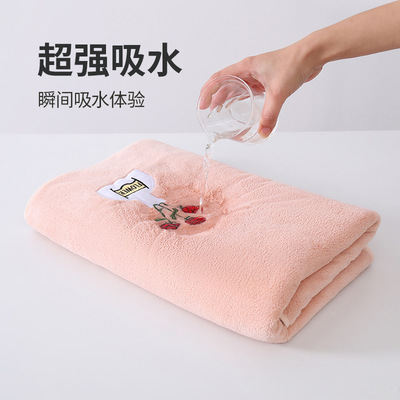樂莊玫瑰花刺繡珊瑚絨浴巾毛巾套裝家用成人吸水速干沙灘巾批發
