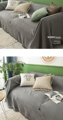 INS Nordic solid color full cover sofa throw blanket universal anti-slip anti-dust sofa cushion cover blanket