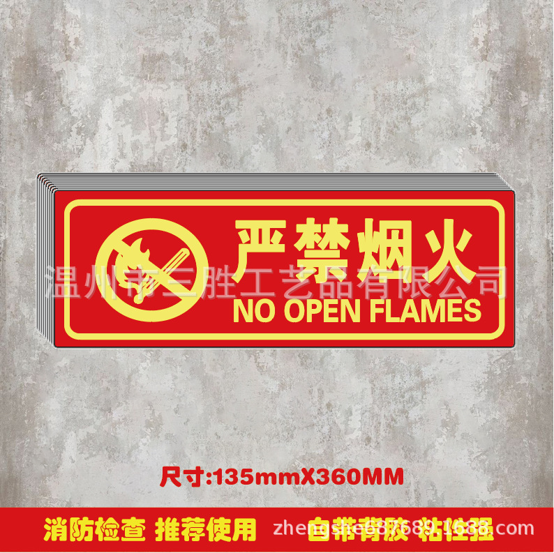 Fire extinguisher luminous wall sticker No Smoking Strictly No Fireworks Sign Electric Danger Fire Hydrant Fluorescent Slogan Sticker