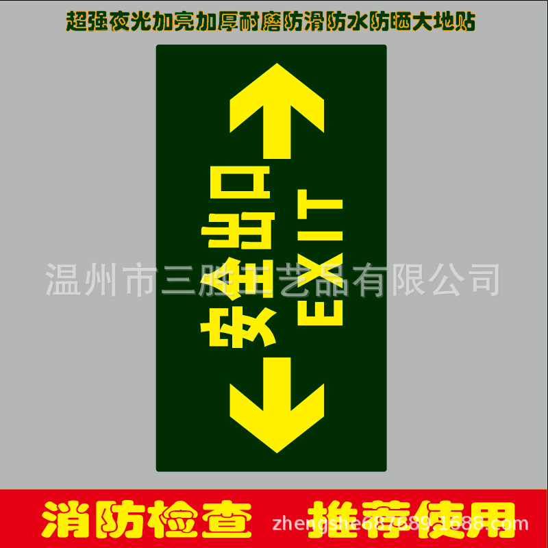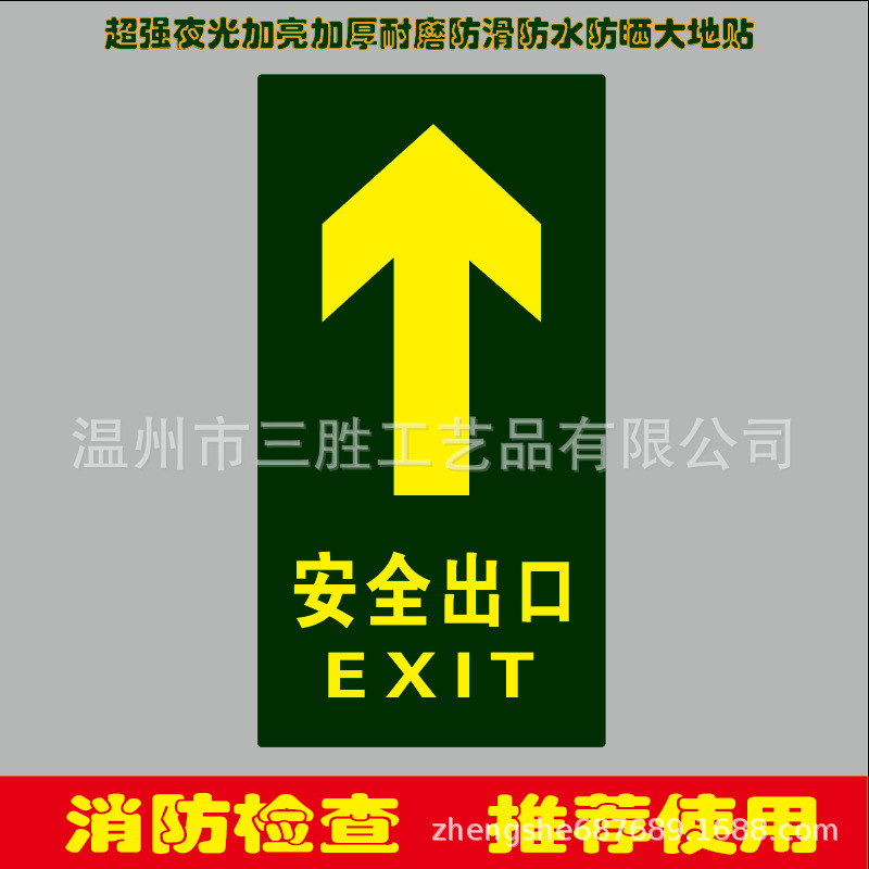 安全出口夜光指示牌大尺寸地貼20X40和30X60防水防滑耐磨標示貼紙