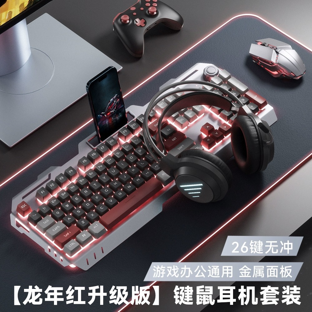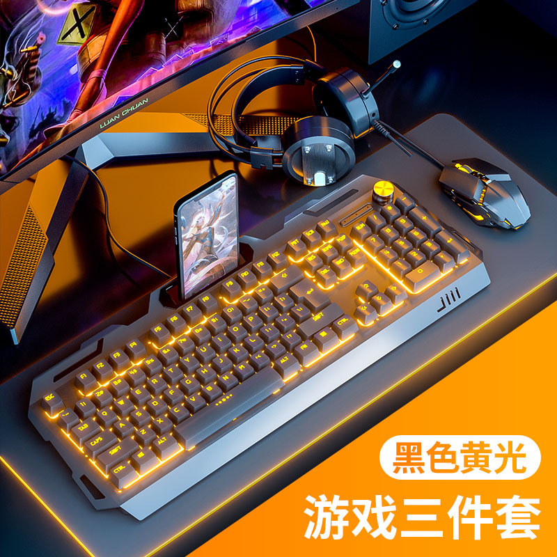 Mengzu YK845 wired luminous keyboard, mouse and headphone set mechanical feel computer notebook peripherals wholesale