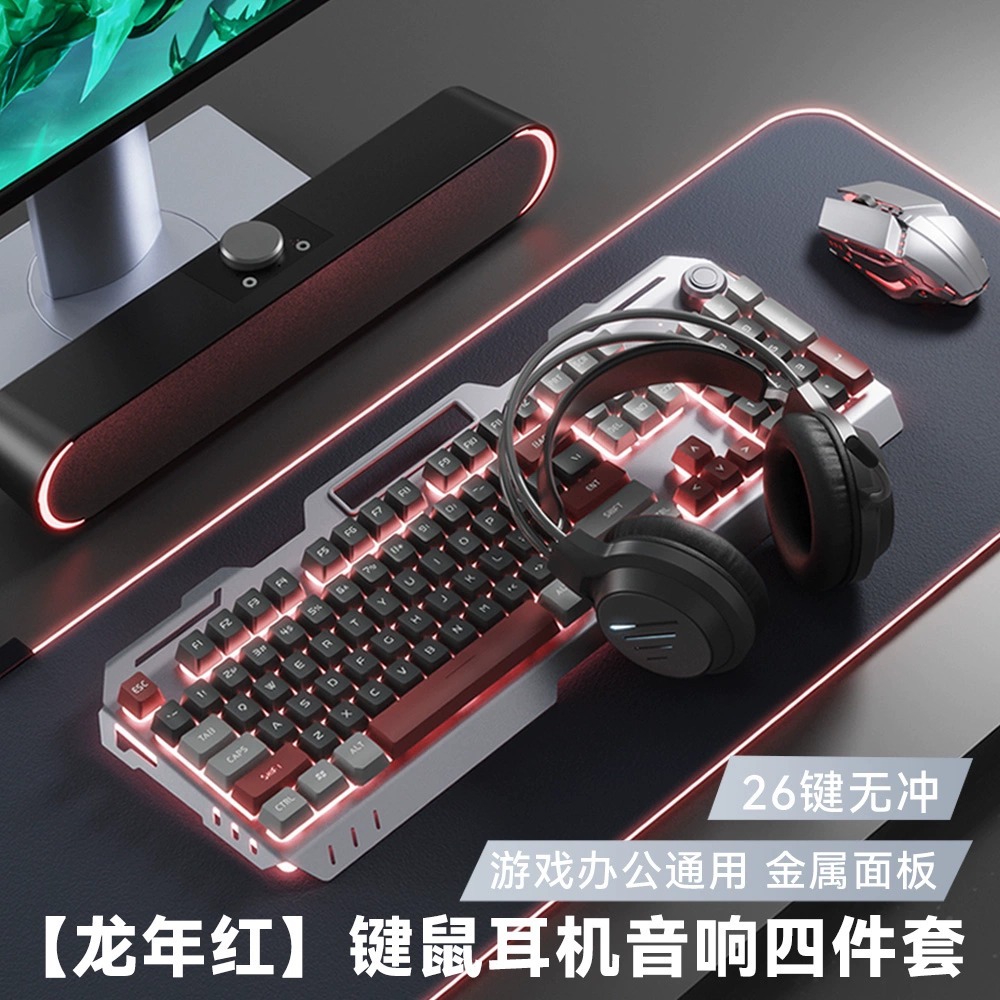 YK845-Red Color Matching [Keyboard, Mouse, Headphones and Audio Four-piece Set] with Knob