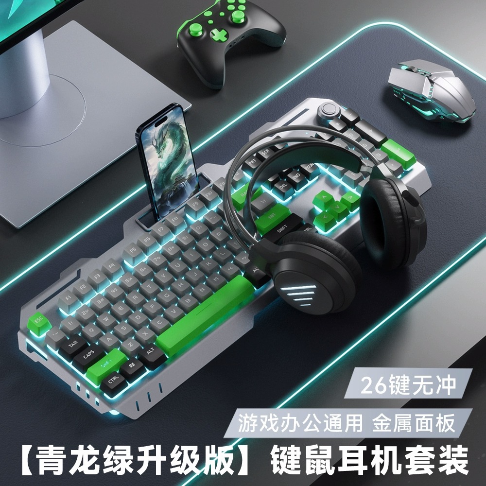 YK845-Green Color Matching [Keyboard, Mouse and Headphones Three-piece Set] with Knob
