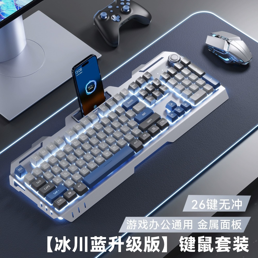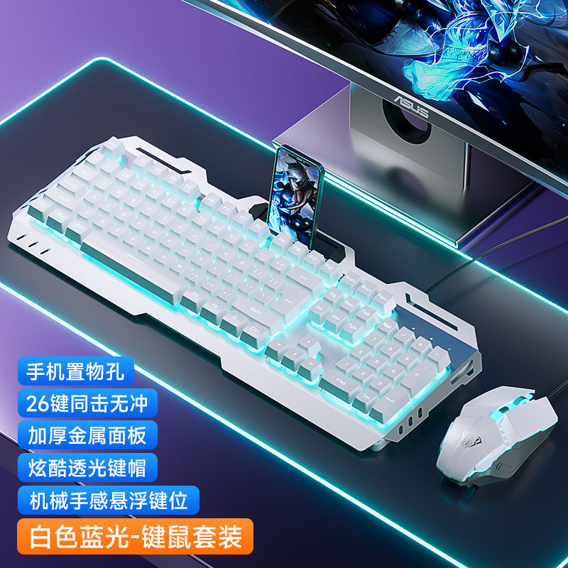 YK845-White Ice Blue Light [Keyboard and Mouse Two-piece Set] with Knob
