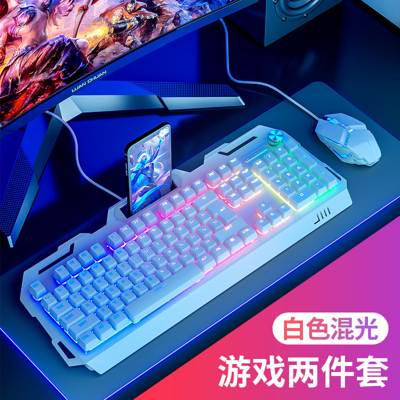 YK845-White Mixed Light [Keyboard and Mouse Two-piece Set] with Knob