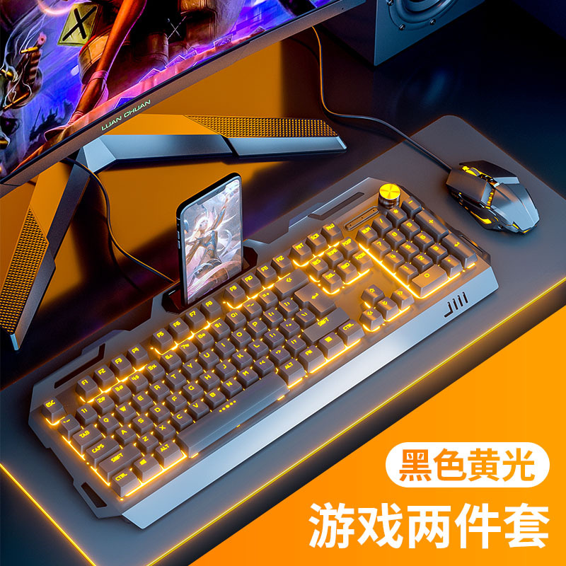 YK845-Black Orange Light [Keyboard and Mouse Two-piece Set] with Knob