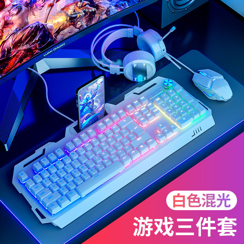 YK845-White Mixed Light [Keyboard, Mouse and Headphones Three-piece Set] with Knob