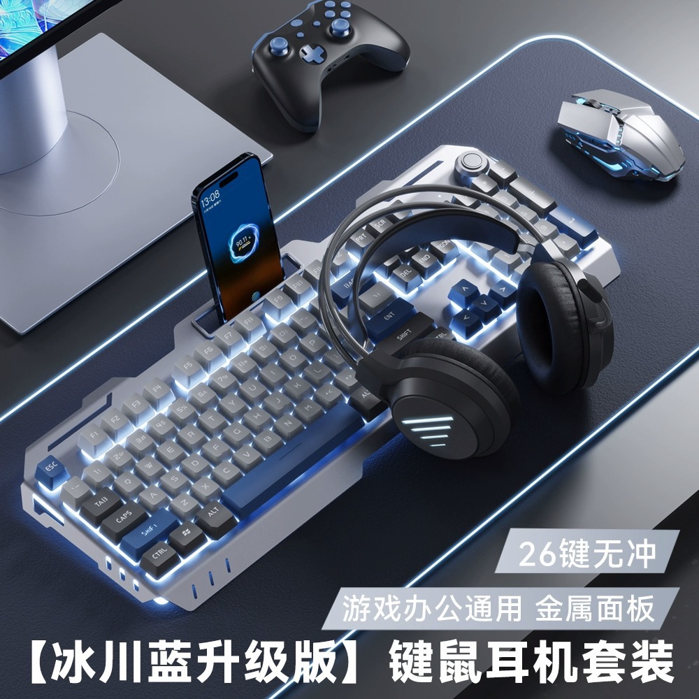 YK845-Gray and blue color matching [keyboard, mouse and headphone three-piece set] with knob