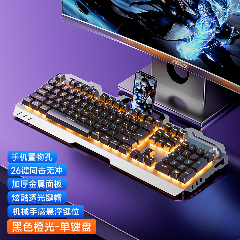 YK845-Black Orange Light [Single Keyboard] with Knob