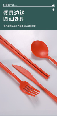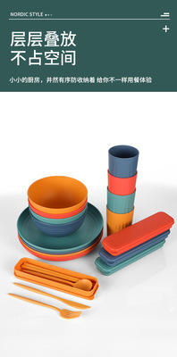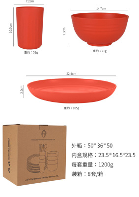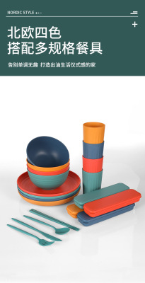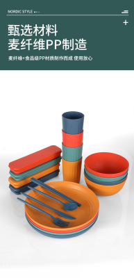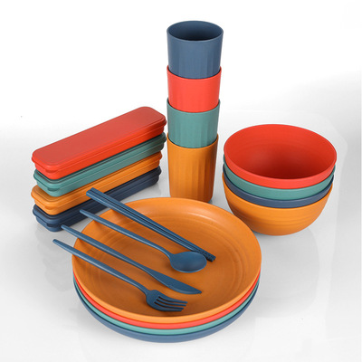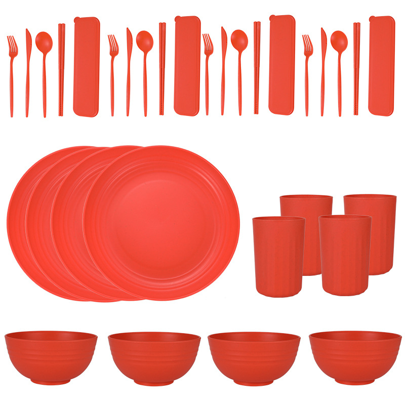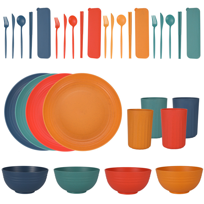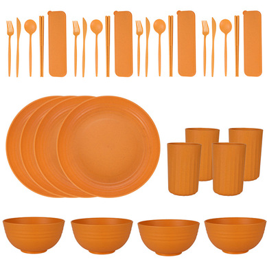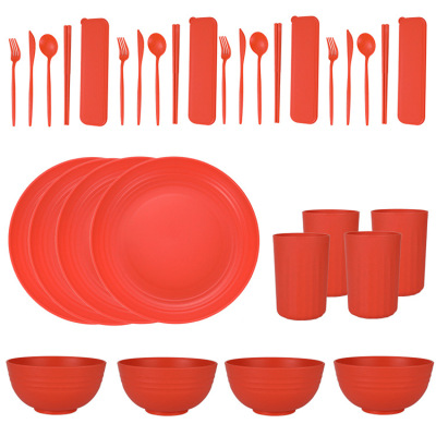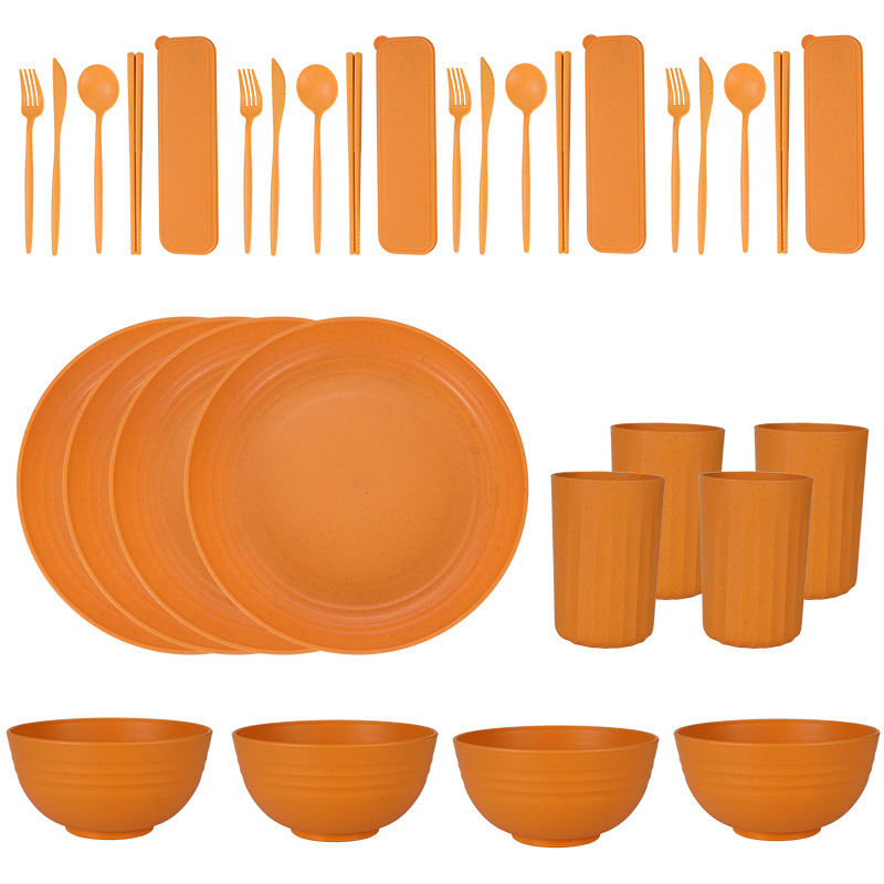 Cross-border Amazon Wheat Straw 32-piece set of plates, bowls, cups, knives, forks, spoons, chopsticks and tableware for 4 people gift set