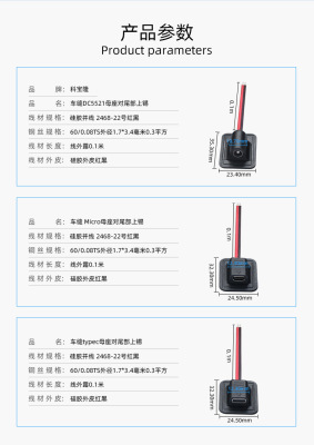 Cobolong DC35135 5521 Micro USB Car Sewn Male Connector Power Cord Silicone Male Tip Charging Cable