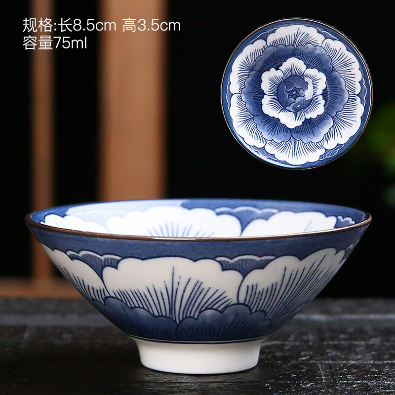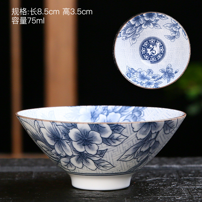 青花瓷茶杯薄胎單杯陶瓷功夫茶具主人杯茶盞家用茶碗品茗杯斗笠杯