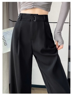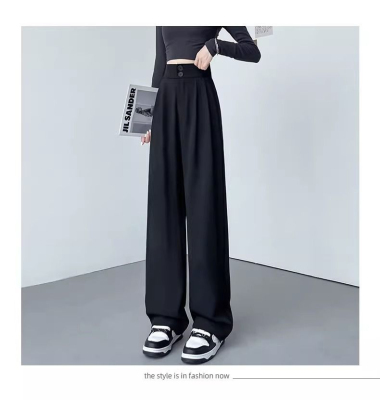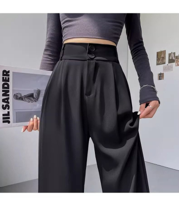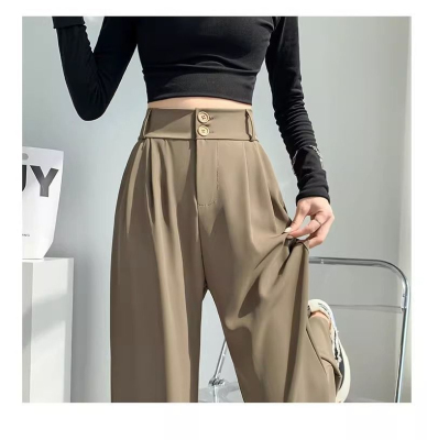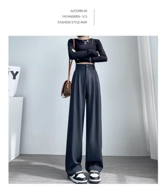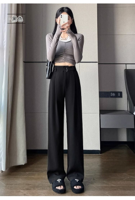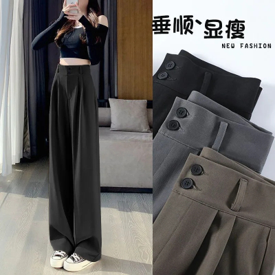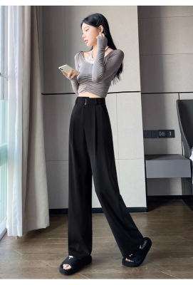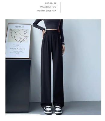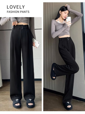 Women's Black Suit Pants 2024 Summer New High-Waisted Flowy Loose Straight Leg Flowy Wide Leg Casual Pants Trendy