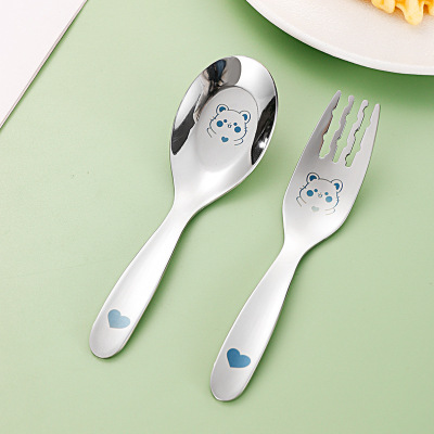 316不鏽鋼叉子勺子套裝可愛兒童餐具便攜式小學生收納盒寶寶吃飯