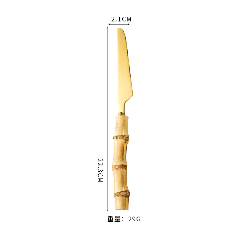 跨境竹柄不鏽鋼餐具甜品沙拉勺叉竹節手柄牛排刀勺子茶勺西餐套裝