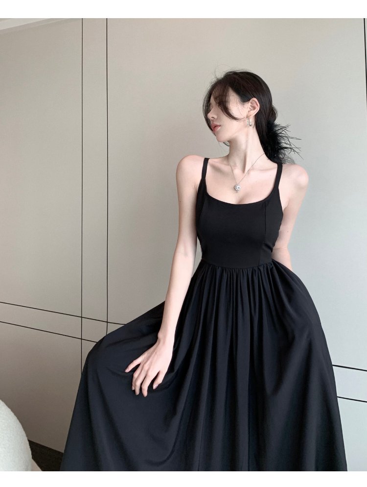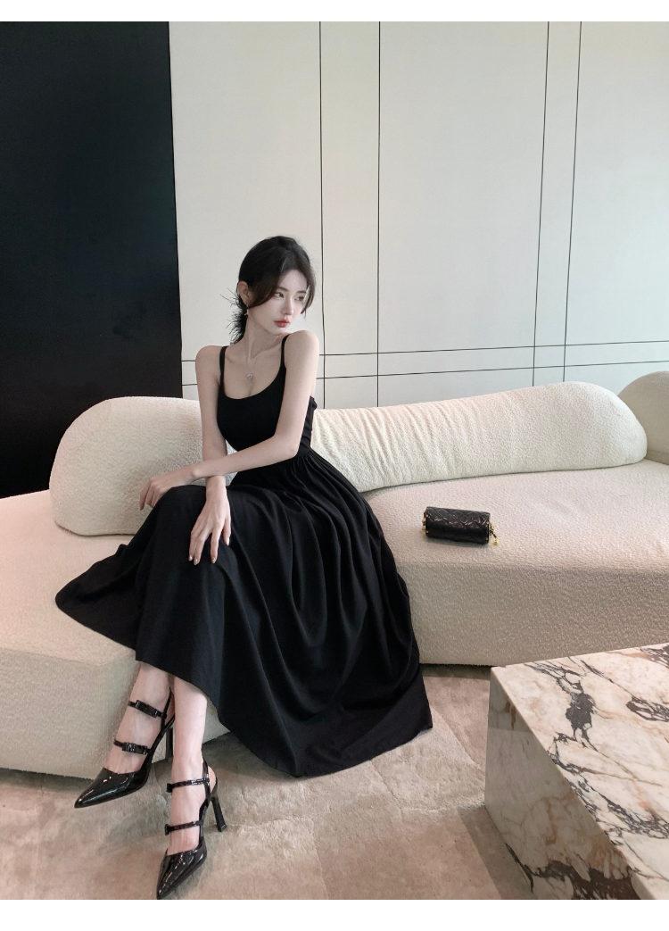 2023 New Pure Desire Splicing Dress Feminine Suspender Skirt Design Temperament Little Black Dress