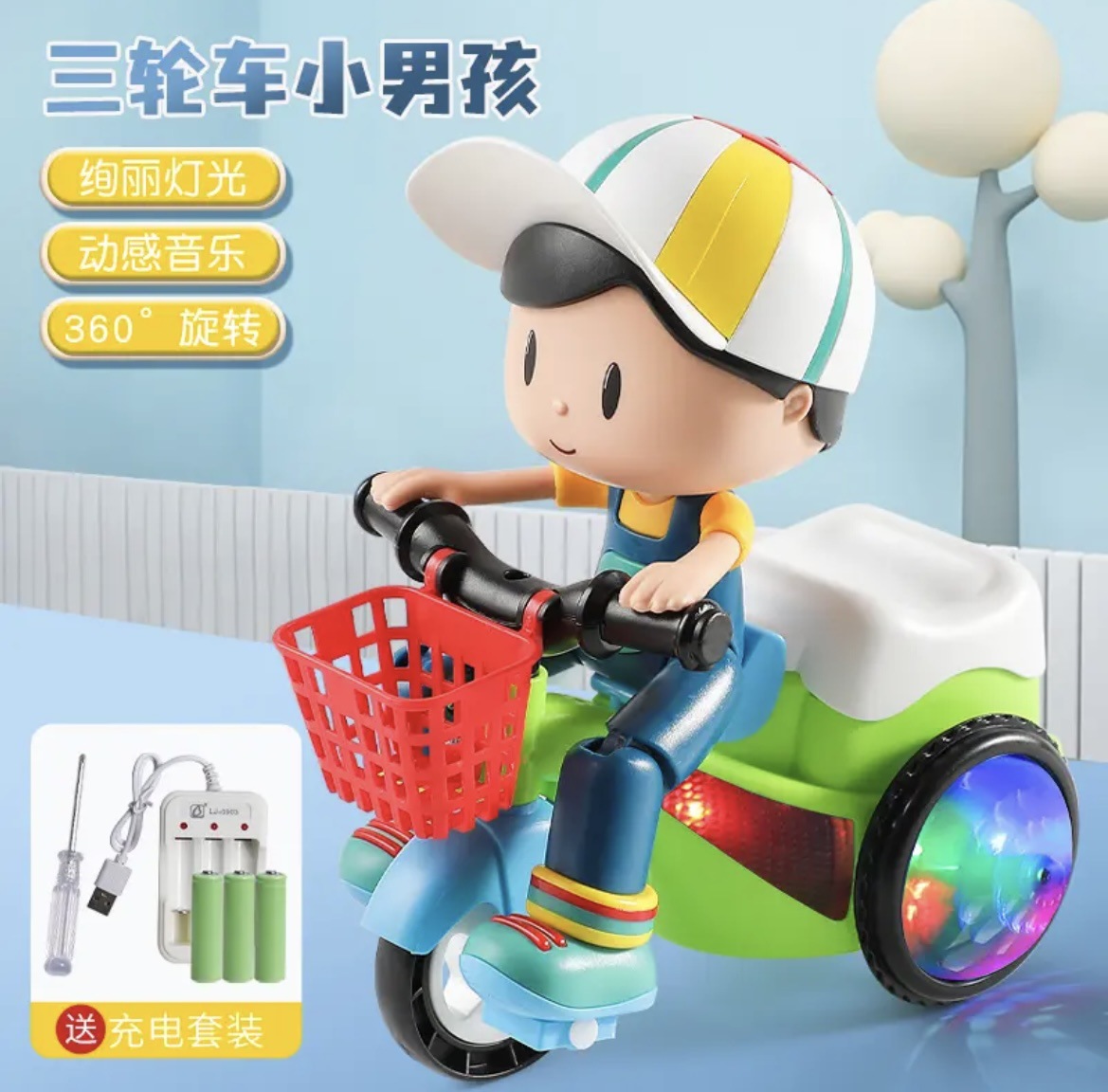 特色功能:旋轉炫酷三輪車,有音樂、燈光