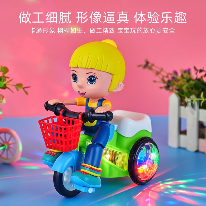 兒童玩具電動旋轉特技三輪車同款音樂發光卡通玩具批發擺攤