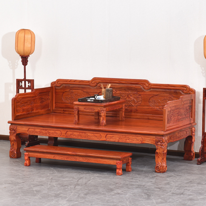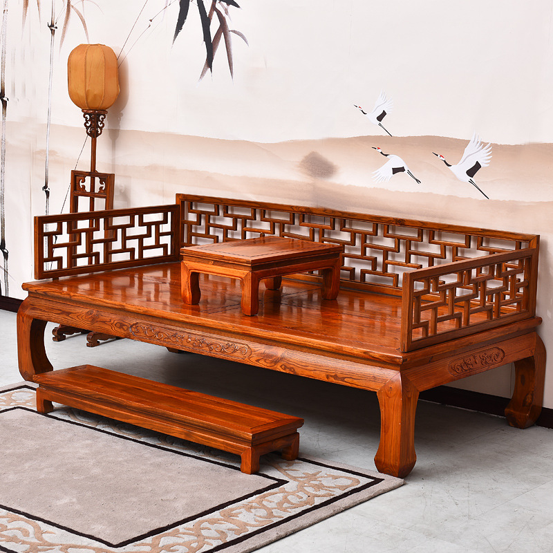Wholesale Arhat bed solid wood Zen footrest small table new Chinese style elm dual-purpose modular furniture living room push-pull sofa