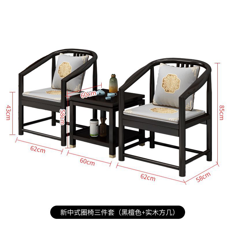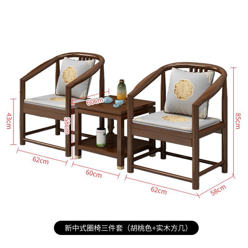 3x New Chinese style solid wood armchair three-piece set walnut wood armchair living room leisure chair backrest book chair three-piece Taishi chair