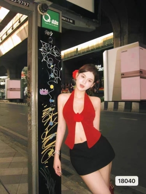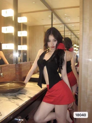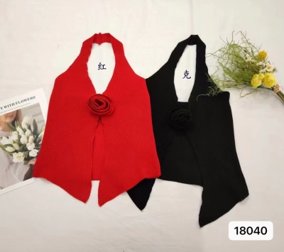 Knit plus-size women's sweet and spicy design with a necklace, three-dimensional flowers, slits, and spaghetti straps.