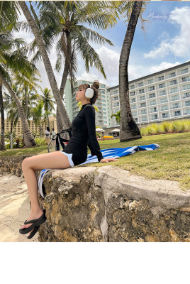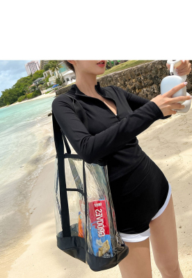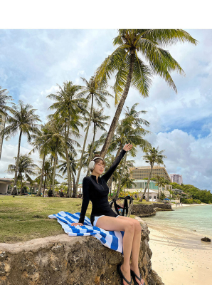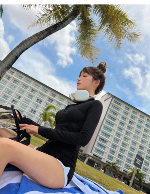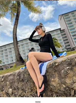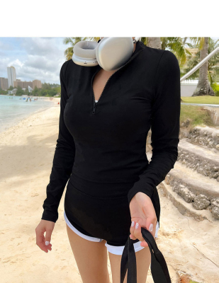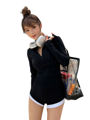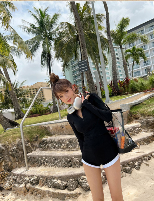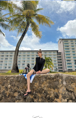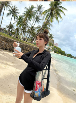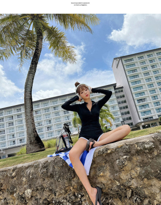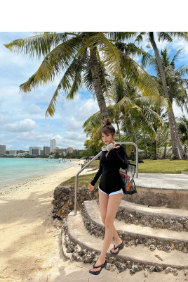 Conservative sun protection long-sleeved women's swimsuit with high waist, slimming belly cover, split design, Sanya beach surfing suit
