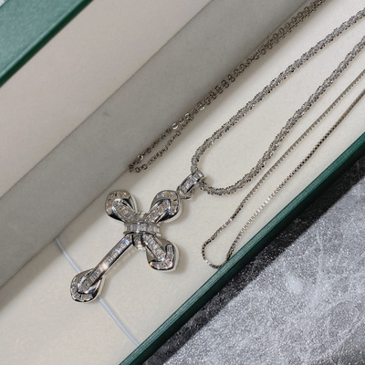 Versa經典十字架寶石璀璨吊墜男女 鍍金微鑲鋯鑽百搭時尚信仰項鍊