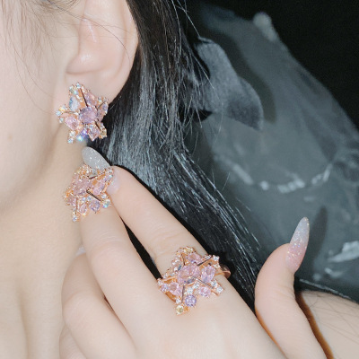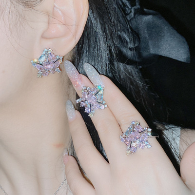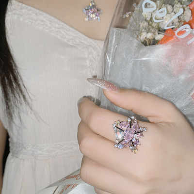 Versa Original Patrick Star Geometric Gemstone Set 18k Plated Micropaved Brilliant Zirconia Irregular Starfish Ring