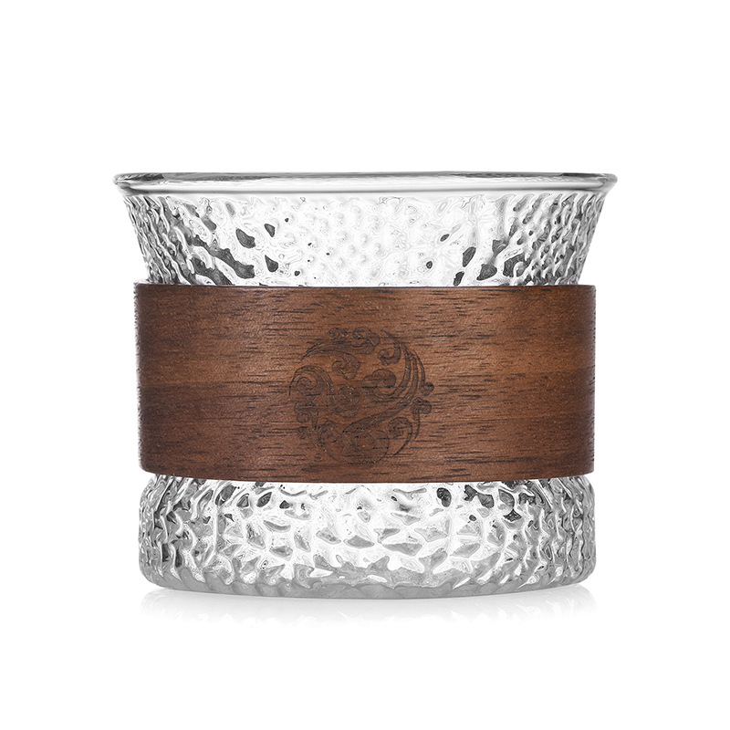 Glass coffee cup, creative small coffee cup, high-looking coffee set, afternoon tea cup, anti-scalding wooden circle Japanese cup