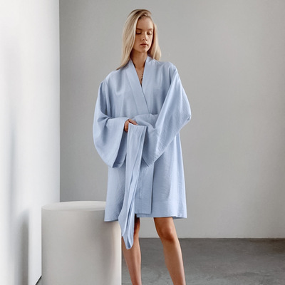 Cross-border European and American Spring 2024 Loose, Casual, Comfortable Cardigan with Laces—Sweat-Absorbent Hotel Bathrobe for Women—Home Wear