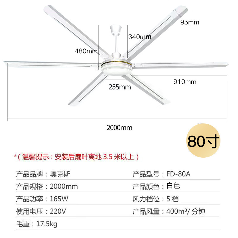 80-inch 2-meter six-blade ceiling fan [Pure copper motor large ceiling fan]