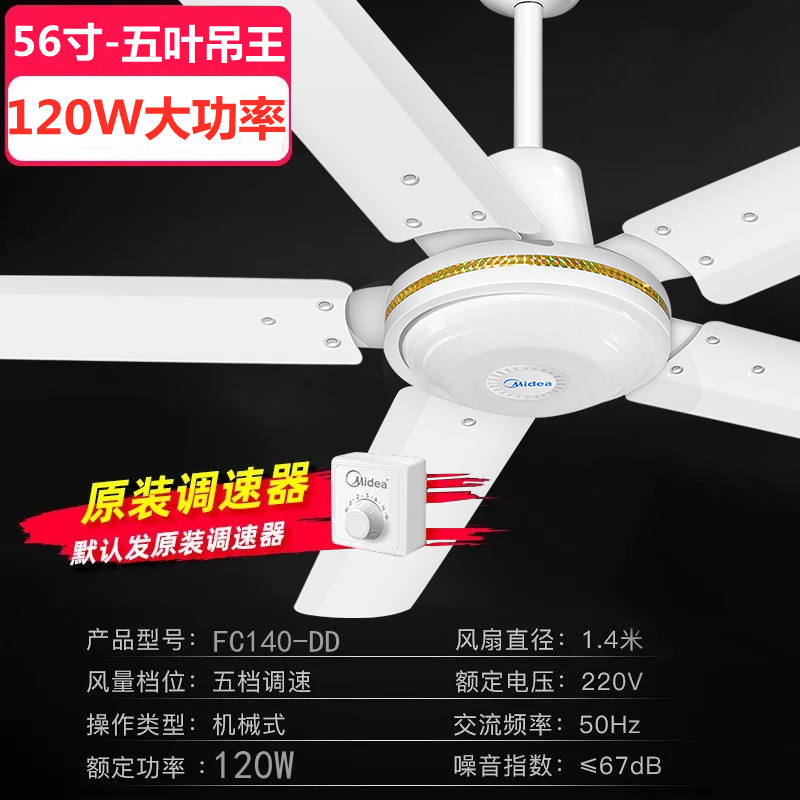 Midea five-blade ceiling fan king FC140-DD large ceiling fan home living room pure copper motor classroom ceiling fan high wind