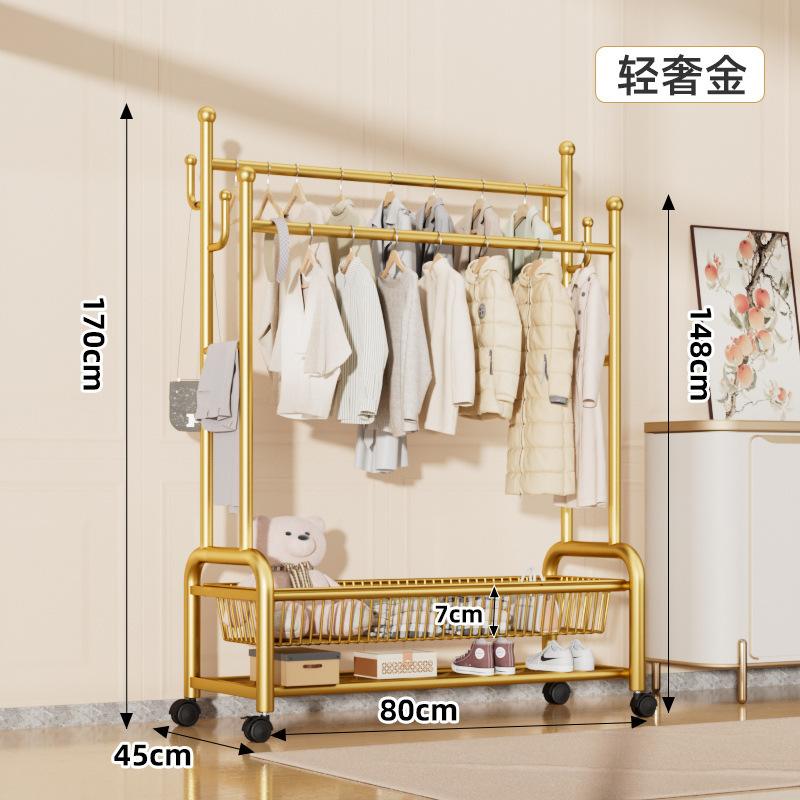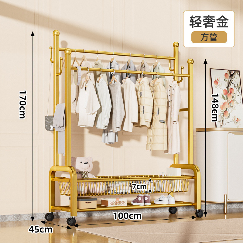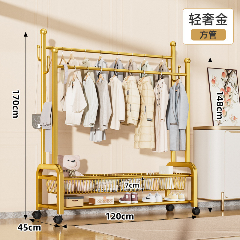 120cm輕奢金—雙排掛衣杆—雙層網籃收納—萬向輪