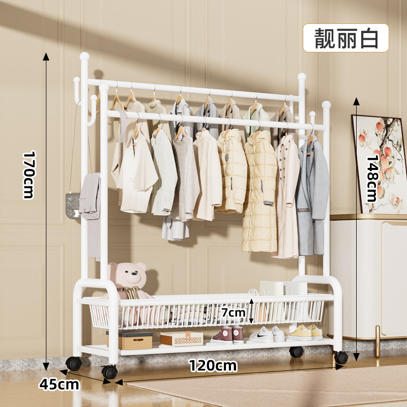 掛衣架落地臥室加厚加粗客廳可移動衣服架子落地式簡易雙杆衣帽架