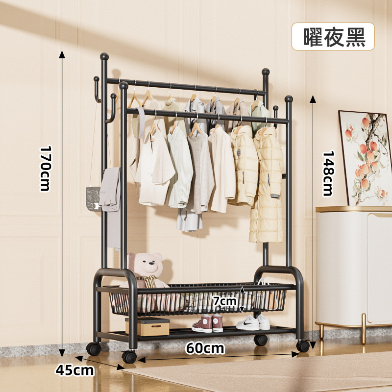 60cm曜石黑—雙排掛衣杆—雙層網籃收納—萬向輪