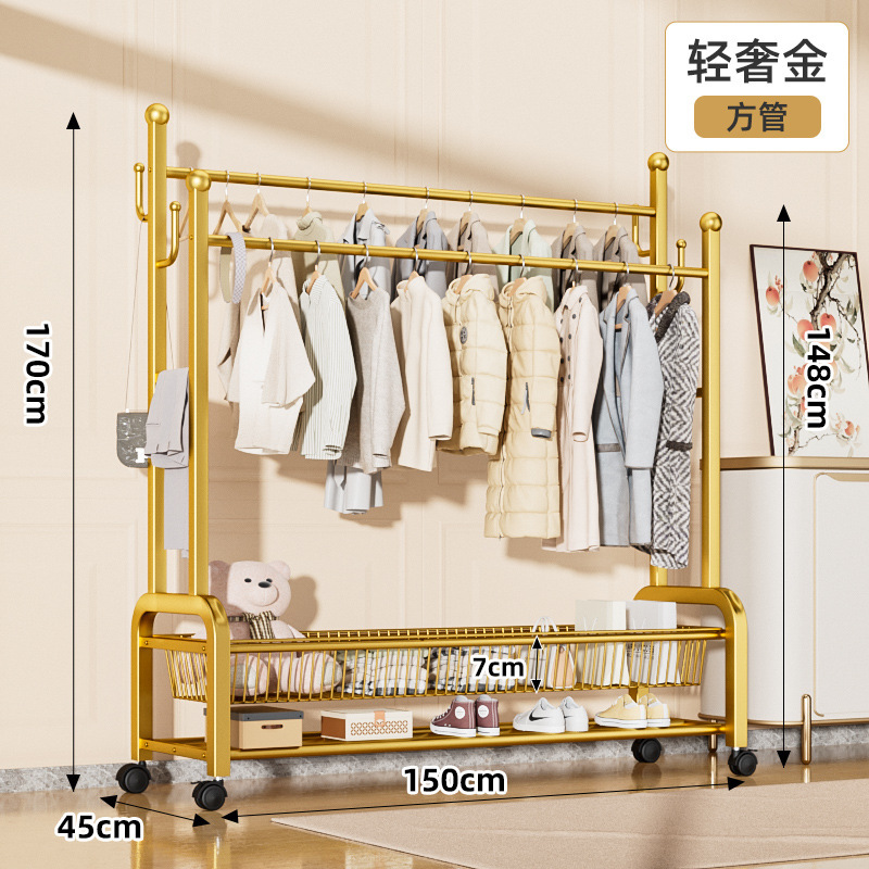 150cm輕奢金—雙排掛衣杆—雙層網籃收納—萬向輪