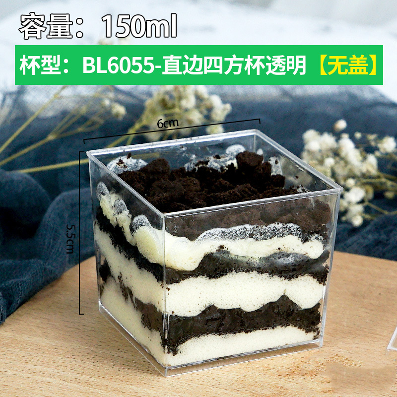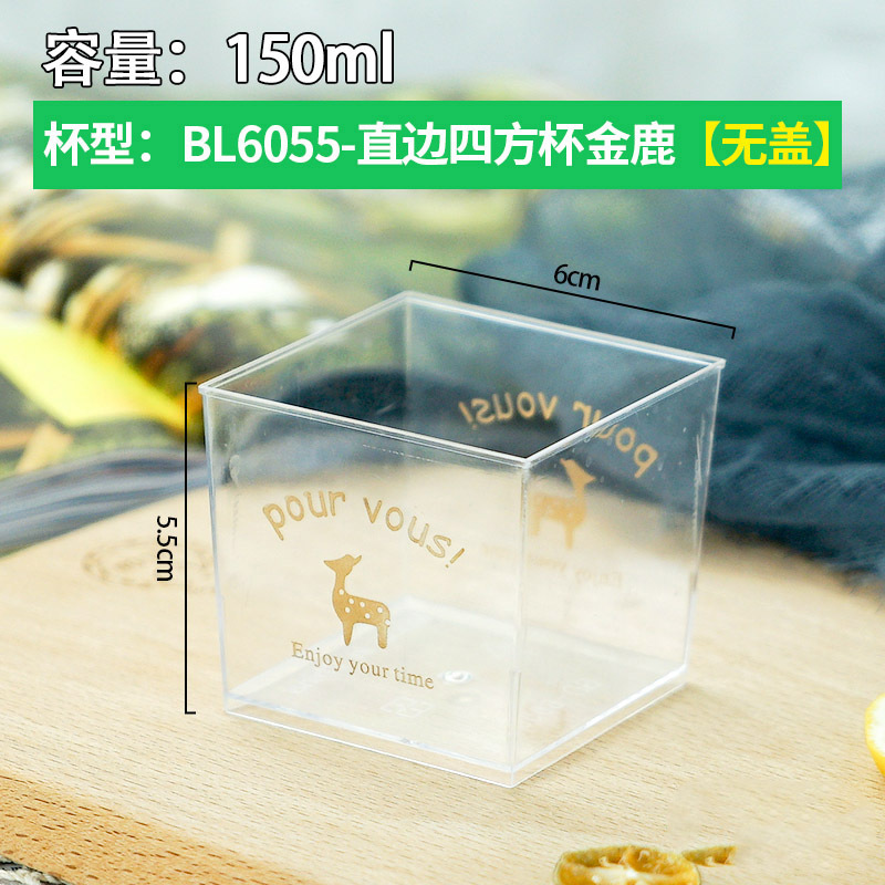 150ML Straight-edged Square Cup - Transparent [Without Lid]