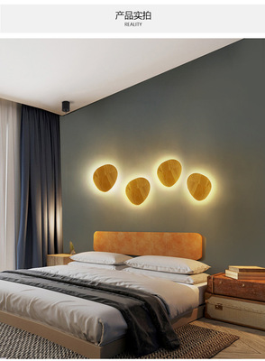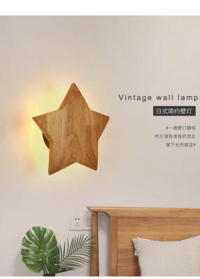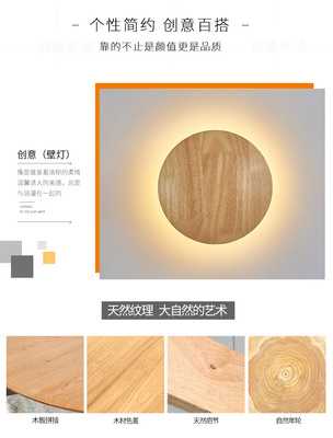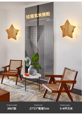 North European solid wood LED wall lamp indoor creative corridor stairway hallway living room sofa background light wooden wall lamp
