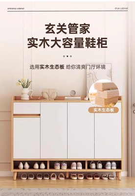 Solid Wood Shoe Cabinet Home Entrance Small Apartment Indoor Multi-layer 2024 New Arrival Entryway Console Cabinet Balcony Storage Cabinet