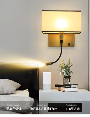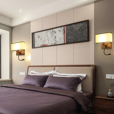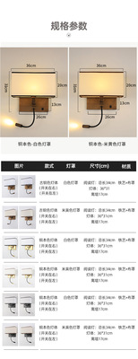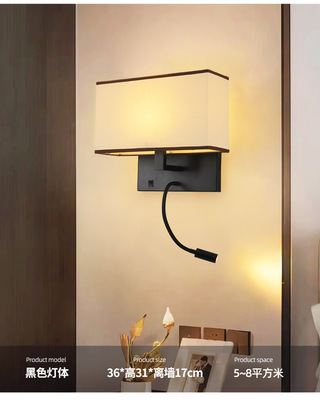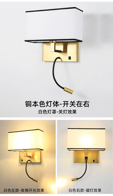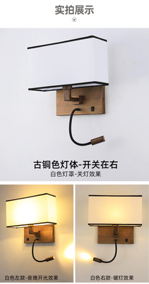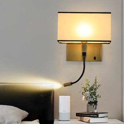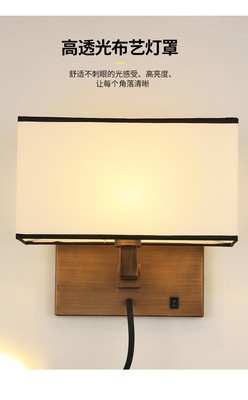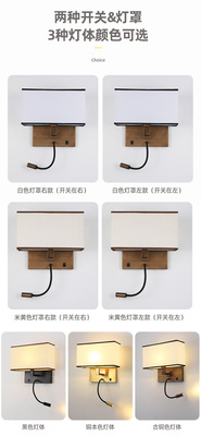 酒店壁燈賓館客房led閱讀燈臥室帶開關布罩床頭燈現代簡約壁燈