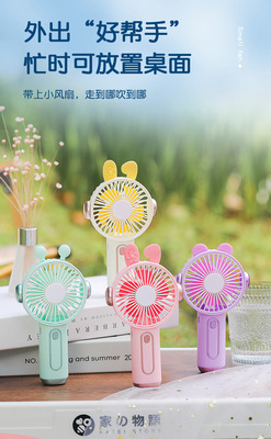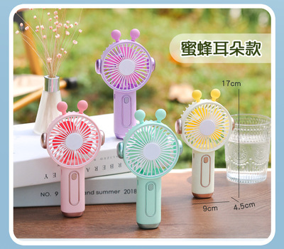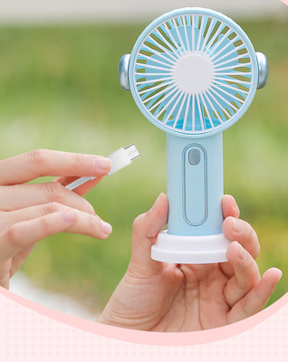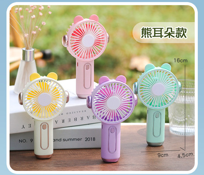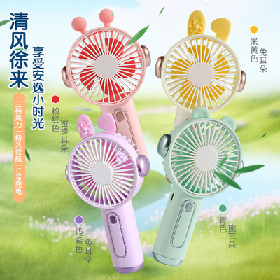 卡通耳機手持小風扇可充電usb學生戶外手拿迷你風扇便攜式大風力