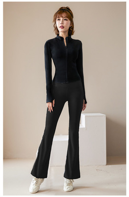 New autumn and winter warm plus velvet long-sleeved yoga jacket for women outdoor sports zipper yoga clothes slimming fitness tops